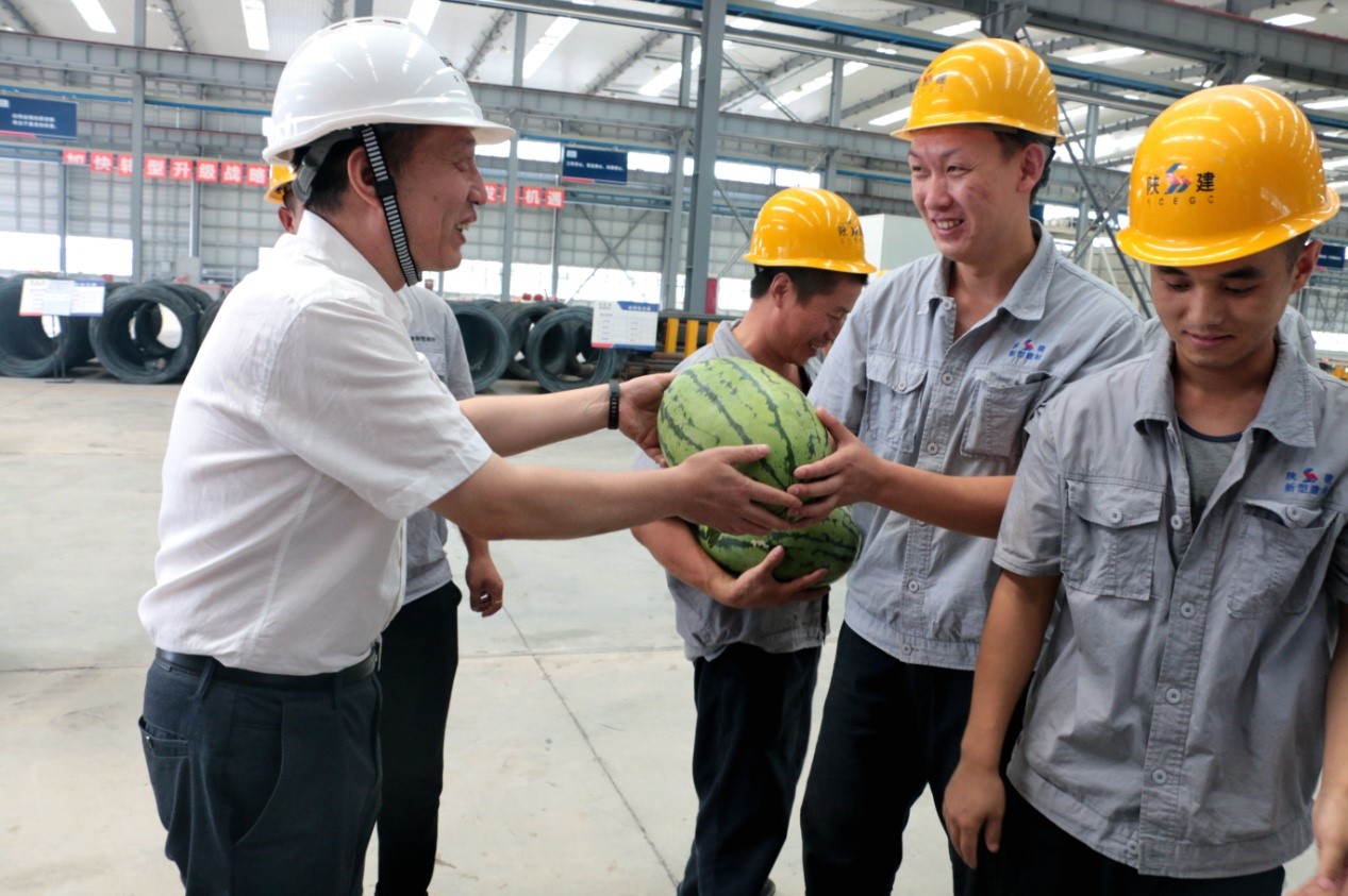 夏日炎炎,驕陽(yáng)似火,連日來(lái),氣溫節(jié)節(jié)攀升。為了保障廣大職工和農(nóng)民工的身體健康,推進(jìn)生產(chǎn)經(jīng)營(yíng)工作的順利進(jìn)行,集團(tuán)公司總經(jīng)理張朝輝、工會(huì)主席王拯民一行于7月13日—7月18日為奮戰(zhàn)在一線的職工送去防暑降溫慰問(wèn)品,讓一線職工在炎炎夏日感受到組織的關(guān)懷與溫暖。